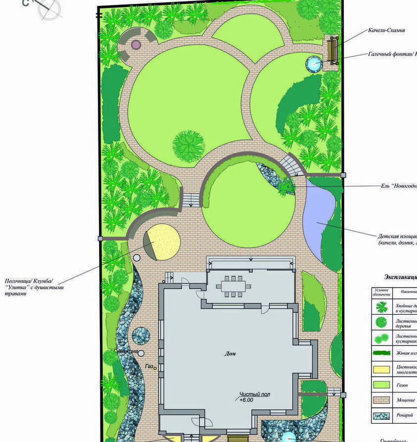 Водоемы, рокарии и альпийские горки, цветники, деревья и кустарники, живые изгороды, беседки, печи для барбекю и прочее…